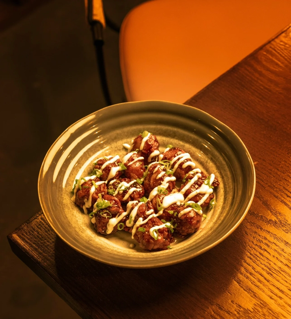 Crispy fried chicken with chogouchujang and Yuzu, topped with ranch sauce.